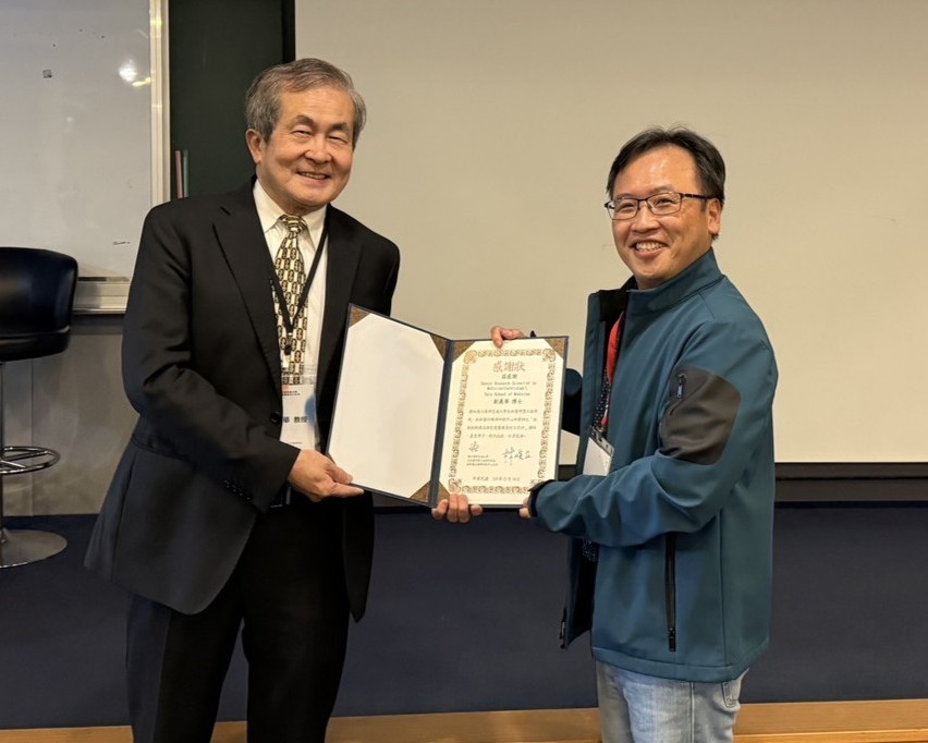 Senior Research Scientist in Medicine (Cardiology), Yale School of Medicine. 劉義華博士(左)於演講後獲頒感謝狀與紀念品,由本院醫放系 吳東信副教授(右)代表致贈