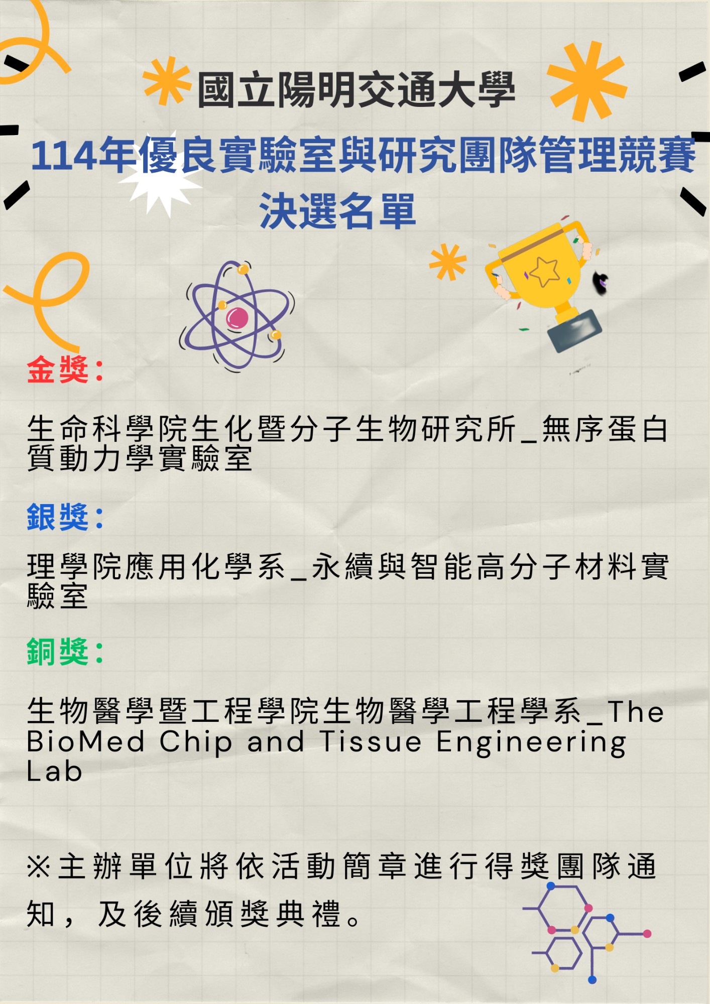 【恭賀】本院醫工系許如秀老師榮獲本校「114年優良實驗室與研究團隊管理競賽」銅獎